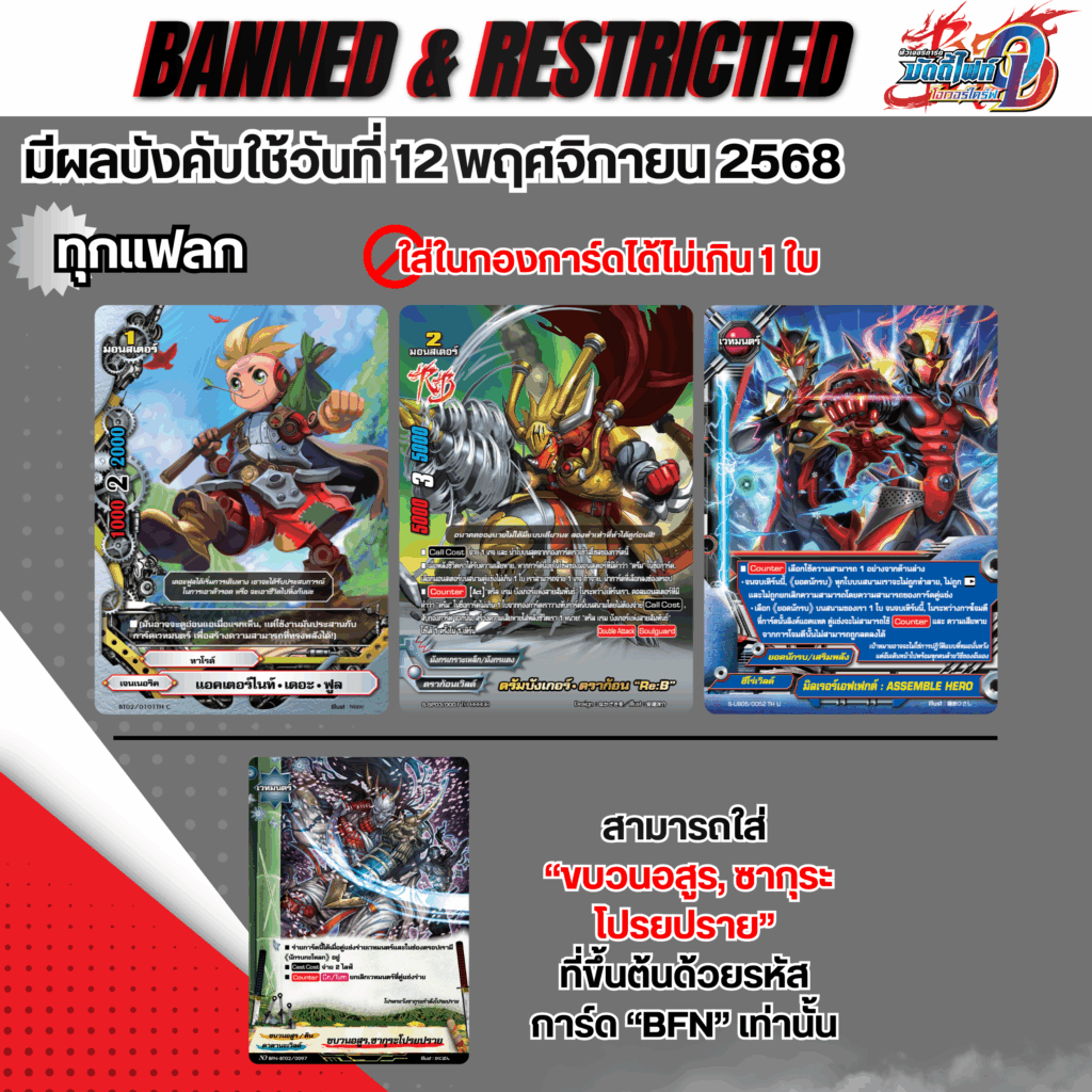 ⚠️- สามารถใส่ “ขบวนอสูร, ซากุระโปรยปราย” ที่ขึ้นต้นด้วยรหัสการ์ด “BFN” เท่านั้น